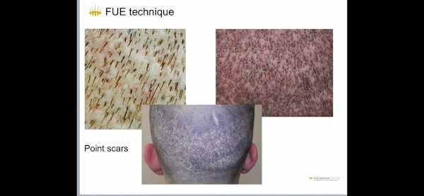 L’altra tecnica è la FUE (Follicular Unit Extraction), in cui ogni follicolo viene estratto singolarmente e reimpiantato nell’area ricevente. Il metodo FUE lascia solo minuscole cicatrici e piccoli ammanchi nella zona donatrice, mentre il metodo strip, lascia l’area donatrice con una lunga cicatrice lineari.In entrambi i casi, portando i capelli corti, le due tecniche lasciano segni visibili. In entrambi i casi la disponibilità di follicoli piliferi donatori è limitata e si traduce in una diminuzione della densità dei capelli, poiché dopo i prelievi non si verificherà alcuna ricrescita nell’area donatrice.