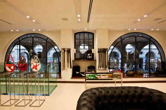 Lo spazio, esprime il format aziendale. Il negozio si sviluppa su tre piani. Una grande vetrata di ingresso proietta la boutique direttamente sui portici a due passi da Piazza San Carlo, al centro un ascensore interamente in cristallo porta al piano intermezzo e poi al primo dove, in un ambiente ampio e luminoso, campeggia l’intera collezione. Lo spazio, grazie ai mobili in mogano, alla cura nella scelta di materiali, ai colori naturali e alle sedute in pelle risulta caldo ed accogliente.