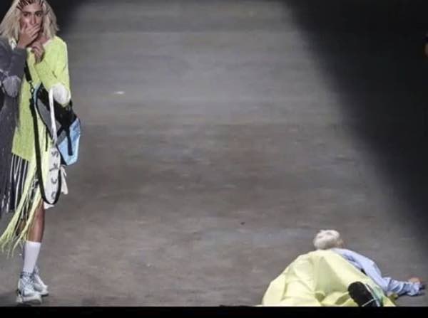 Inizialmente s è ipotizzato che potesse trattarsi di una trovata pubblicitaria del marchio, ma i paramedici presenti alla sfilata si sono subito insospettiti e lo hanno immediatamente soccorso constatandone il decesso.