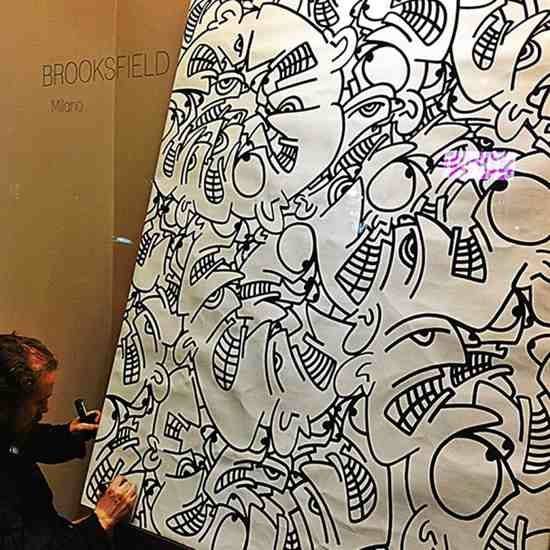 L’evento dello scorso 10 aprile ha visto la partecipazione dello street artist Galo*. L’artista, che ha già collaborato con Bertolotto Porte in passato, ha realizzato dal vivo un’opera su pannelli posizionati in vetrina, coinvolgendo con la sua creatività tutto il pubblico del Fuori Salone.