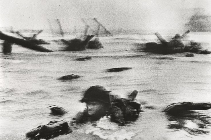 Capa sbarca con le prime ondate di soldati americani sulla spiaggia di Omaha, Normandia. Scatta 106 fotografie in condizioni di fuoco reale. Un errore tecnico del laboratorio fotografico di London durante lo sviluppo distrugge quasi tutta la pellicola: sopravvivono undici immagini, sfocate, sgranate, in alcuni casi quasi illeggibili.