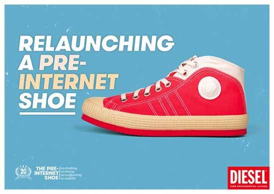 Correva l’anno 1993 quando la casa di moda lanciò sul mercato il modello di scarpe YUK. Oggi, riproponendo al mercato lo stesso modello, Diesel chiede ai suoi fan/clienti di dimostrare che sia ancora possibile conoscersi, fare cose interessanti e divertirsi senza internet.