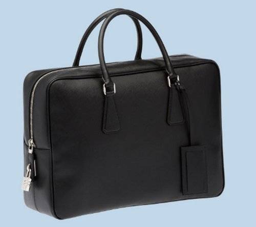 Anche il settore del lavoro, ogni tanto ha bisogno di lusso. Ecco perchè Prada ha creato la cartella in pelle saffiano, rifinita con accessori in metallo dalla finitura in acciaio lucido cui fa capo il logo laterale a triangolo smaltato.