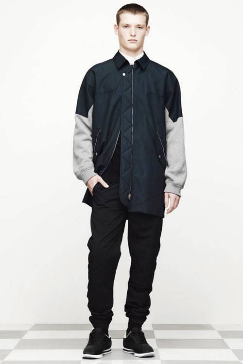 Alexander Wang presenta la sua ultima linea che ha uno spirito giovanile e un approccio attivo al menswear. Venendo alla ribalta con una serie di semplici pantaloncini, camiceria, jeans e capi spalla, Wang resta attento alle proporzioni e ai dettagli.