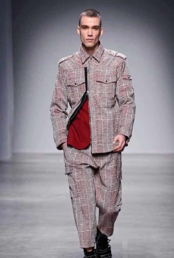 L’uomo nasce dalla sartoria classica e dal mondo delle uniformi militari, e si sviluppa proponendo nuove field jacket, camicie over imbottite, pantaloni cargo dai volumi contemporanei e rilassati, pensati con cappotti uniforme. Gli abiti si colorano di tinte solide in color block, dal rosa al rosso carminio, utilizzato anche sui completi doppiopetto a stampa check geometrico o principe di Galles in cotone, che apportano un allure più rilassata e contemporanea.
