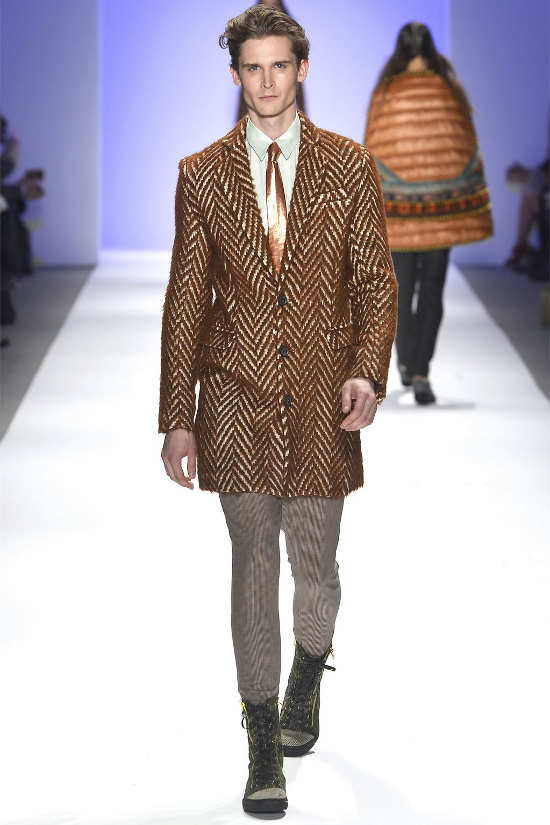 Le linee uomo proposte a New York ripercorrono lo stile già intravisto a Barcellona con una esplicita enfasi su patchwork e stampe.