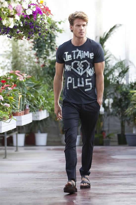 Stampe liberty e fantasie floreali, l’uomo Dondup della prossima primavera estate 2013 si ispira al controverso artista francese Serge Gainsbourg, a cui la collezione si ispira. Fresco di lana, gabardina e tela super 120s, cotone crepe, cotone ultra-light, poplin, raso e micro fantasie tinti filo compongono l’ampia offerta di tessuti, camicie in mussola di cotone tinte delle tonalità naturali del crema e del sabbia.