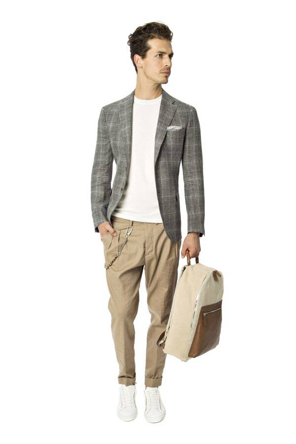 E sono 8 i passaggi a mano degli abiti sartoriali che, realizzati da maestranze napoletane, vengono proposti in pregiate lana/seta, dalla mano morbida e dal peso leggero, nei colori del deserto africano. Le giacche estive, destrutturate e confortevoli, mostrano una superficie materica nel lino fantasia; hanno effetti hopsack, quelle in lino/cotone; sembrano maglia tridimensionale i modelli casual in seta/lino. Sono da portare con pantaloni morbidi, rivisti nei volumi e costruiti con una nuova cintura sartoriale; e su camicie chambray cimosato giapponese, o in lino, cotone egiziano, anche mixati tra loro.