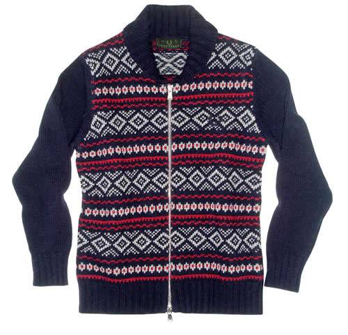 Maglia in lambswool full zip con collo a scialle con jacquard con motivi nordici.