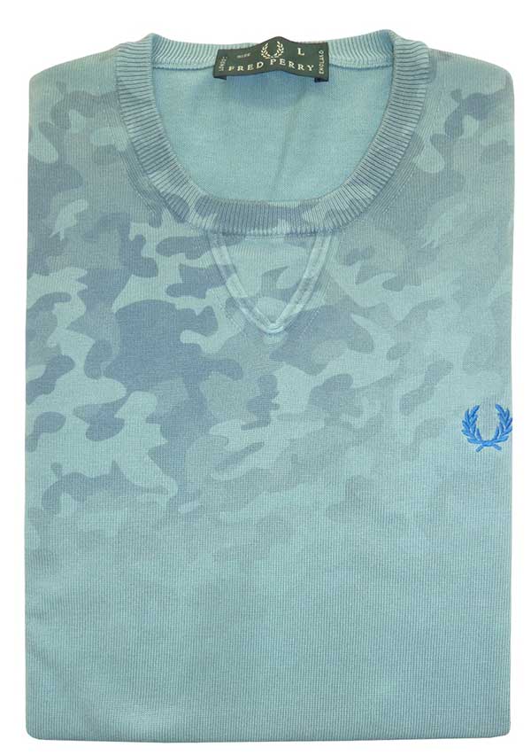 Per la Primavera Estate 2014 Fred Perry immagina una felpa che sia un vero e proprio pezzo unico: la stampa camouflage all over è trattata in modo insolito e originale – sovratinta in modo da conferire al capo un effetto sfumato, e lo speciale trattamento sun faded regala tonalità brinate e una mano piacevolmente morbida.