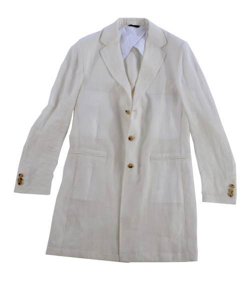 Come in questo caban tre bottoni di gusto sartoriale che unisce la perfezione delle linee essenziali alla scelta forte del colore, un bianco assoluto reso contemporaneo dalla trama naturale del lino. Un’alternativa alla classica giacca per un look elegante ma rilassato, libero da strutture rigide e canoni estetici formali, per un viaggiatore moderno e metropolitano.