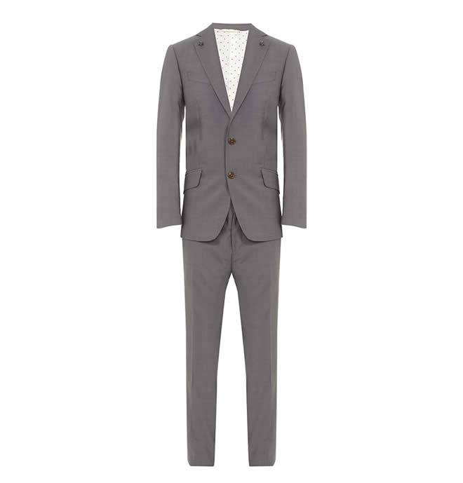 Vivienne Westwood ha gusti particolari, lo sappiamo… anche d’estate. E questo è sottolineato dalla creazione di un elegante abito, squisitamente su misura e rifinito con i bottoni distintivi del logo della stilista, ossia il teschio con le ossa incrociate. La giacca ha una doppia chiusura con bottone ed è foderata a pois, con quattro tasche esterne e quattro interne. I pantaloni hanno due tasche nella parte anteriore e due nella parte posteriore. Il tutto è realizzato in pura lana italiana, di colore grigio. L’abito è perfetto per l’abbigliamento da ufficio e si accompagna perfettamente con camicie bianche.