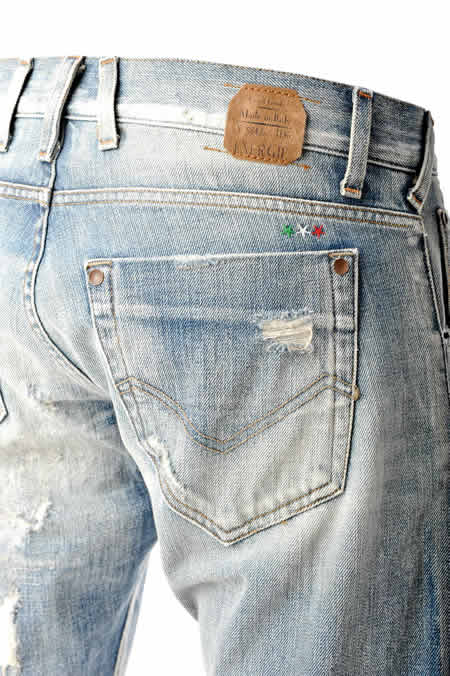 La raffinatezza della realizzazione viene sottolineata anche dalla presenza di tre stelline tricolore ricamate a mano sulla tasca posteriore del jeans, che richiamano una produzione interamente Made in Italy, propria di tutta la collezione.