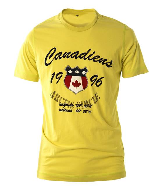 Una tshirt per lui: in cotone, dal fit regolare, sceglie il giallo limone movimentato dalla scritta a contrasto che riporta le coordinate del circolo polare artico… perfetta per “freddare” gli avversari.