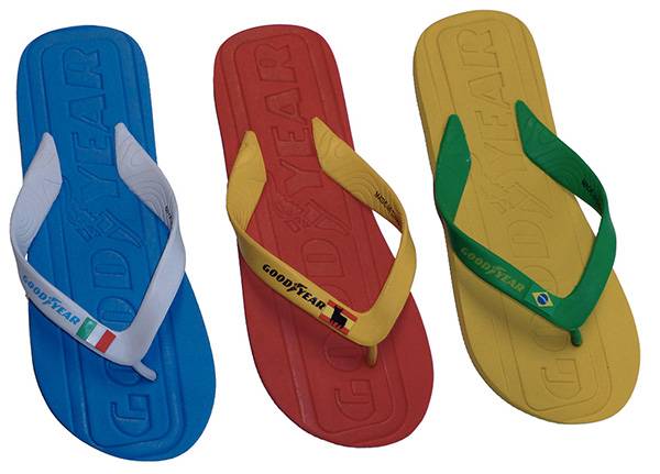 A meno di un mese dall’inizio dei Mondiali di calcio in Brasile, ecco un’idea da indossare per essere sempre sulla cresta dell’onda con lo storico marchio americano Goodyear: le ciabattine brasiliane.
