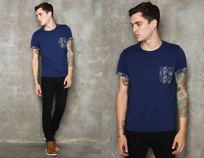 Le stampe sono importanti nelle t-shirt perchè fanno tendenza. E in questa stagione, l’informale indumento a maniche corte, sta sovrastando l’industria della moda con un nuovo marchio Worland Paisley Tee che mantiene eleganti le magliettine distinguendole e trendendole popolari grazie alla presenza della stampa non solo sulla tasca del petto, ma anche nel rivestimento delle maniche. Come regola generale, Paisley segue quella della moderazione. Si evita quindi l’eccesso di ritrovarsi la stampa ovunque come se il tessuto fosse una tavolozza da riempire totalmente e ciò che appare non è altro che un capo d’abbigliamento armonioso e non troppo sgargiante.