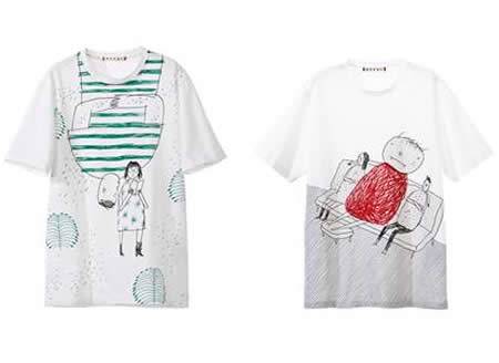 I soggetti delle illustrazioni di Brian Rea sono stati riprodotti su top in gabardine tecnico con la stampa sul davanti, t-shirt in puro cotone e shopping in pelle o PVC dai manici in pelle e per la collezione MARNI UOMO su t-shirt in puro cotone.