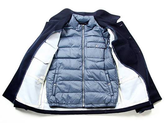 Appena messo sul mercato ecco il versatile Moncler V, giacca di lana e piumino insieme. Questa giacca 2 in 1 dispone di un guscio esterno in lana con, all’interno, il tradizionale piumino Moncler. Ognuno dei due pezzi possono essere indossati anche separatamente. Disponibile in nero o blu scuro.