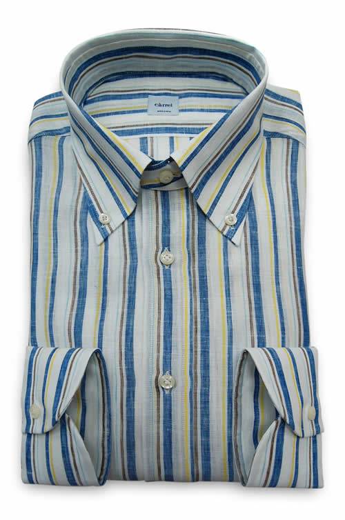 I tessuti sono leggerissimi, i filati sono nobili e il cotone è mischiato al lino per ottenere un risultato armonico e fresco. Garze di cotone e lavorazione giro inglese regalano alla camicia una piacevole sensazione di leggerezza.