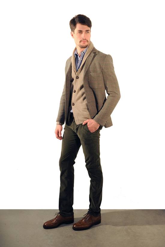 Le forme sono volutamente semplici e lineari, ma studiate con cura in ogni dettaglio, per esaltare la figura maschile ed accompagnarla nei suoi movimenti. I tessuti sono preziosi perché naturali, lavorati con sapienza artigianale e trattati per risultare corposi ma, allo stesso tempo, leggeri. Prima fra tutti la lana, morbida e avvolgente, anche quando viene infeltrita per donarle un aspetto decisamente vissuto. I dettagli, infine, richiamano la tradizione sartoriale italiana, fatta di genio creativo e materie eccellenti, che rivive anche nella palette cromatica con sfumature calde e vibranti, dal verde al cammello, unite ai toni più accesi del bordeaux.