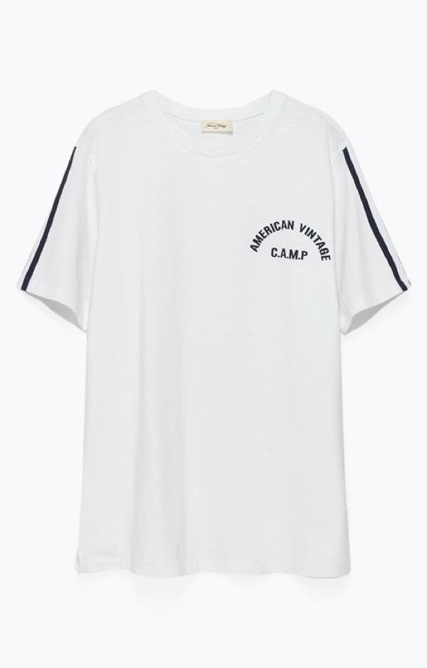 Grazie alle lettere maiuscole di ispirazione accademica posizionate sui capi, la la collezione AMV Camp riporta alla mente i ricordi preziosi dell’amicizia estiva, del movimento e della libertà. Declinato su t-shirt di cotone, lo spirito AMV Camp si ispira a un guardaroba sporstwear indossato come seconda pelle: l’ispirazione è unisex, i tagli sono dritti, i materiali fluidi e facili da indossare. Al classico cotone viene aggiunto un delicato effetto spugna talmente morbido che non ci si stanca di toccare; i colori più tenui si mescolano alle cromie pastello o a maniche a contrasto in colori pop, firma esclusiva della creatività di American Vintage, su fondo bianco crema.