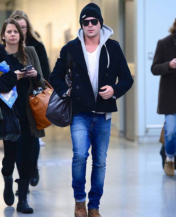 L’attore ormai è diventato adulto e gira il mondo sfoggiando fisico statuario e look casual ma ben curato. Sportivo e allo stesso tempo elegante, Zac ha scelto jeans skinny, maglietta bianca e felpa con maxi cappuccio. La borsa color testa di moro e e la giacca doppio petto di Nail Barrett danno quel tocco chic a tutto il look.