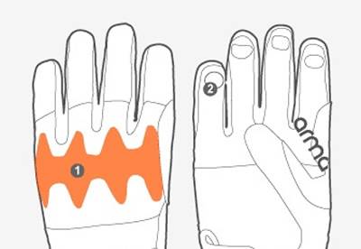 Comfort e controllo attraverso la funzionalità e la protezione di: cuscinetti d3oTM sulle nocche (fig.1), fori di aerazione (fig.2), chiusura regolabiliein Velcro® (fig.3).