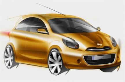 Primi bozzetti uffiali per la nuova Nissan Micra, ovvero  la quarta generazione della famosa utilitaria giapponese che debutterà sul mercato thailandese a marzo del 2010.
