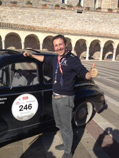 Venerdi 17 partenza di nuovo da Ferrara per raggiungere San Marino, suggestiva e colma di gente tra cui anche l’attrice icona di tutti i tempi Gina Lollobrigida; poi la meravigliosa Assisi, con la sua basilica e i frati ai bordi della piazza San Francesco in attesa di applaudire tutte le vetture in transito…E poi Roma, l’arrivo, la passerella di tutte le auto iscritte alla gara a Castel Sant’angelo con la splendida vista di San Pietro illuminata…E ancora il passaggio delle vetture intorno al Colosseo e lungo i Fori Imperiali. Emozioni ? Ne abbiamo provate tante, istantanee ma forti. Il vecchio che si mischia con la modernità disegnando nuovi colori per le strade d’Italia, facendoci respirare passione ed entusiasmo per una gara che ormai non uscirà mai più dai cuori di tutti gli italiani (compresi noi ovviamente).