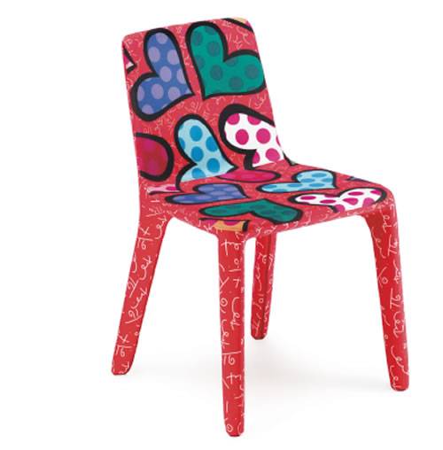 Così, come un camaleonte che cambia il proprio aspetto al mutare dell’ambiente che lo circonda, anche Giulitta si “traveste” secondo emozioni e stili di vita. Da aprile 2012 la seduta Giulitta è entrata a far parte di “Infiniti loves Romero Britto”, la prima collezione di sedute e complementi d’arredo reinterpretati dall’artista brasiliano Romero Britto. Misure seduta Giulitta: altezza 765 mm, larghezza 500 mm, profondità 527 mm.