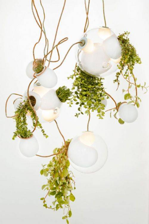 Quando infatti viene a mancare lo spazio, interviene l’ingegno che risolve tutti i problemi: grazie a questo giardino pensile è possibile introdurre in casa un po’ di sano materiale organico vegetale, senza che lo spazio attorno risulti soffocato da questa invasione. Inoltre questo giardino pensile (che rappresenta alla perfezione un vero e proprio giardinetto da interni o da esterni) è composto da una struttura di sfere di vetro in grado di ospitare piccole piante, con tanto di vasi e lampadine, di modo che il giardino pensile possa assolvere anche la funzione di lampadario.