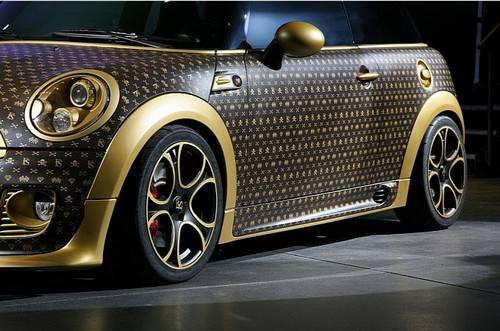 Moda e motori si fondono in un’idea eccentrica per la gioia di qualche vip che vorrà attirare l’attenzione su di sè. Ecco infatti la Mini Cooper Works che si presenta con una verniciatura che riprende la linea delle famose borse Louis Vuitton. La Mini Cooper turbo da 1,6 litri, con 211 CV, è stata equipaggiata grazie a l’intervento del tuner tedesco CoverEFX, con una pelle fatta di monogram Louis Vuitton.