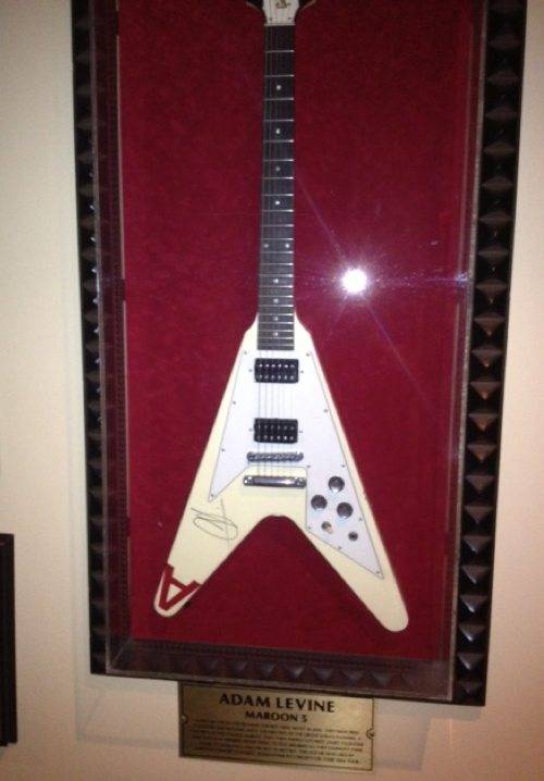 In Time Square a New York le soprese, certo, non sono carenti mai ! Nello storico Hard Rock Cafè, oltre ai dischi d’oro di Frank Sinatra e agli abiti cult dei Beatles, ci siamo trovati di fronte alla chitarra di Adam Levine dei Maroon 5.Levine, impegnato attualmente in Usa come giudice dell’edizione 2013 di The Voice, ha voluto omaggiare lo storico locale newyorkese con la sua chitarra più preziosa. Bianca, appesa al muro e protetta da una teca, lo strumento ci ha sicuramente suscitato molte emozioni, visto che pure noi siamo fan dell’artista.