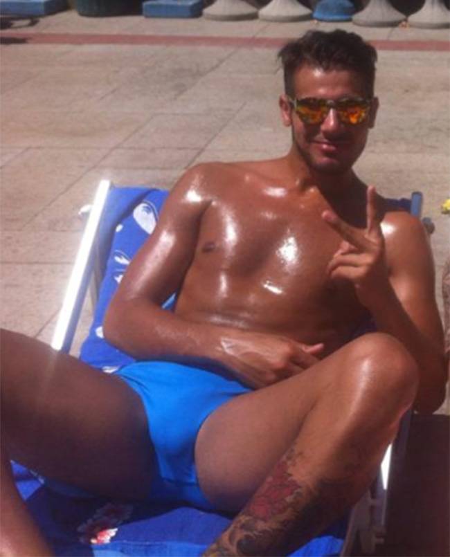 Aldo, come potete vedere in questo scatto, indossava un costume decisamente fluo che fa tendenza sulle spiagge italiane durante quest’estate 2014.