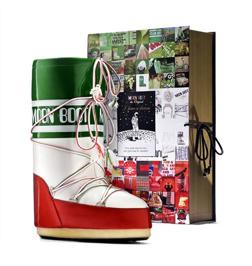 Moon Boot con questa iniziativa vuole rendere omaggio all’Italia ed al suo ruolo di guida mondiale nel creare bellezza e stile. Il modello celebrativo, che si chiama “MoonBoot loves Italy”, realizzato in vinile lucido tricolore e caratterizzato da un piccolo cuore verde, bianco e rosso posto all’interno della mitica fascia, sarà venduto il prossimo inverno in soli 150 esemplari in 15 esclusivi stores del nostro paese.