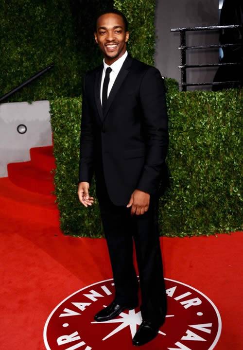 Ha indossato un tuxedo grigio scuro, camicia e cravatta Burberry in occasione del Vanity Fair Oscar Party