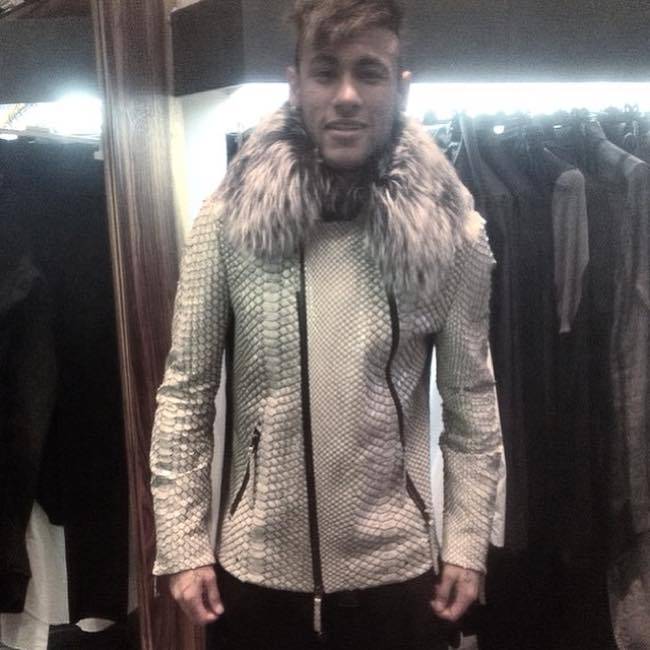 Neymar Jr, calciatore brasiliano, attaccante del Barcellona e della Nazionale brasiliana, è stato avvistato con un capo dello stilista TOM REBL durante una giornata di shopping presso Closet Case nella capitale inglese.