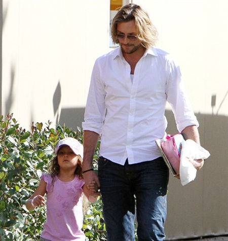 Ecco Gabriel Aubry mentre, da bravo padre, recupera la figlia Nahla a scuola. Look semplice, sobrio ma d’effetto: camicia bianca un po’ sbottonata abbinata al blue jeans rendono il suo outfit impeccabile. Gli occhiali sono d’obbligo per passare inosservato.