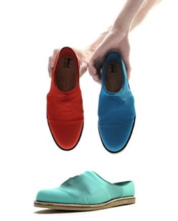 Le scarpe sono disponibili in cromie eccentriche che vanno dal rosso fuoco al blu elettrico.