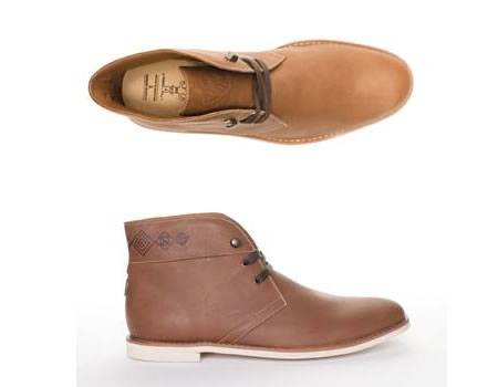 Ha, infatti, personalizzato il classico desert boot di Generic Surplus, in pelle cerata color tabacco e con una suola in EVA, con le sue grafiche distintive, ispirate al deserto, lavorate a sbalzo sia sulla pelle che nella soletta interna del boot, utilizzando un colore marrone che si ispirasse alla terra.
