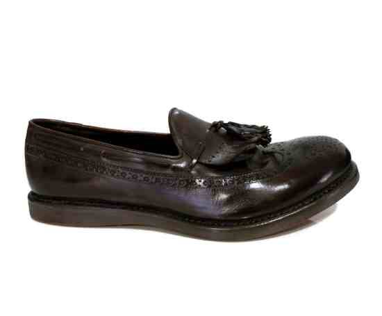 Modelli senza tempo per la collezione Autunno Inverno 2013-14 di Raparo che per l’uomo propone, in nuova veste, un’icona di stile: il mocassino. Arricchito da frangia con nappine, coda di rondine con foratura all’inglese, è realizzato in vitello spazzolato. L’effetto “sporcato” e invecchiato è ottenuto manualmente e conferisce un look vintage – used, ma assolutamente chic.