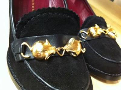 Questo nuovo mocassino firmato Marc Jacobs esprime totalmente lo stile elegante e classico di Jacobs: un mocassino con tacco alto e grosso, cuciture a vista e interni rossi.Il mocassino è impreziosito da due accenti dorati posti sul davanti della scarpa. Stile unico, quindi, da indossare ai piedi per occasioni importanti ma anche per dare quel tocco glamour in più al proprio vivere quotidiano.
