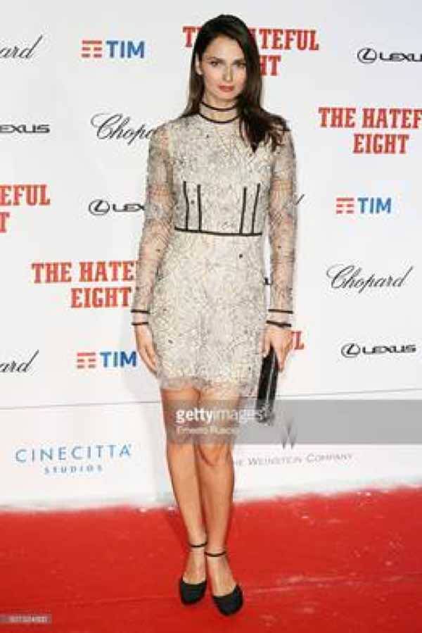 Leggi tuttoAnna Safroncik indossa un abito in tulle con rose in cristallo ricamate a mano e micro canottiglie con profili a