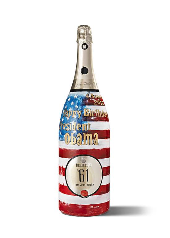 Una bottiglia d’eccezione per celebrare 51 anni davvero speciali: questo è il regalo che la Guido Berlucchi ha realizzato per il compleanno del Presidente degli Stati Uniti Barack Obama. Per festeggiare il Presidente in vero “stile italian”, la Berlucchi ha realizzato un esemplare unico in formato Jéroboam di Franciacorta Berlucchi ’61 Brut -linea di prodotto nata proprio per omaggiare l’anno di nascita dell’azienda, lo stesso in cui nacque Barack Obama- interamente decorato a mano da artigiani franciacortini.