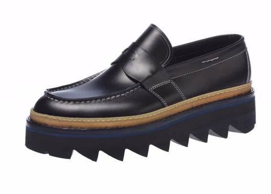 Rifinisce e dettaglia il look da cerimonia una coppola abbinata e un mocassino in velour con effetto sfumato nelle stesse cromie dell’abito.