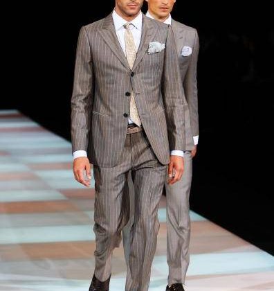 Sotto le giacche camicie e blaser con taschino, cinture per i pantaloni dalla linea classica.