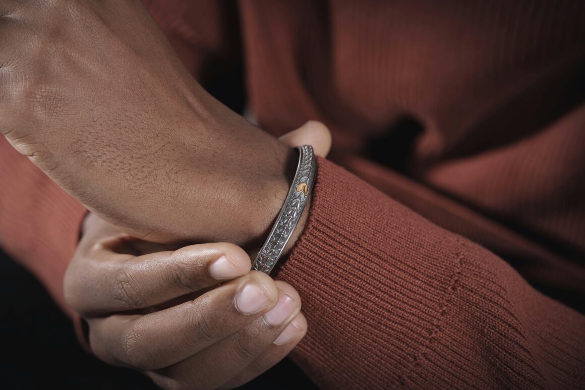 Un bracciale rigido di piccolo diametro su un polso massiccio sparisce e risulta incongruo. Un anello di proporzioni ridotte su una mano grande perde tutta la sua presenza. I gioielli da uomo devono essere scelti anche tenendo conto della propria corporatura: ciò che funziona su una mano sottile non funziona necessariamente su una mano larga, e viceversa.