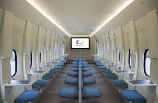 Leggi tuttoLa società britannica Design Q, si è ispirata ai velivoli militari da trasporto e alla metropolitana per disegnare questo aereo