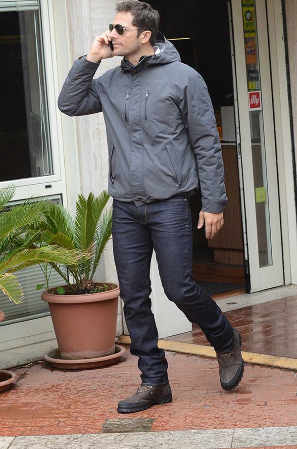 Leggi tuttoLuca Capuano, attore di successo comparso in diverse fiction televisive, parla al telefonino passeggiando in una giornata piovosa per le strade