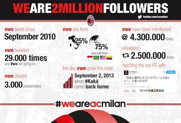 Il Milan supera i 2 milioni di followers su twitter: #weareacmilan